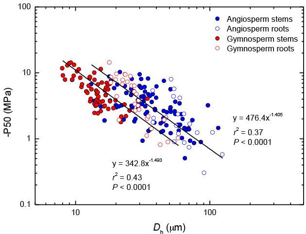 Overall, the structure of the xylem can be represented as a series of cost-benefit trade-offs where conductive efficiency and low construction cost are balanced against safety from dysfunction and increased biomechanical support. Although wood traits have recently received considerable attention, we still lack a clear understanding of how these trade-offs are coordinated across broad geographical and taxonomic scales. A recent data synthesis of xylem functional traits is allowing us to examine these trade-offs in a quantitative manner. The database is currently being updated and includes trait values for 5,786 observations. The database is focused on vulnerability to embolism (P50) and hydraulic conductivity (KS and KL) but contains data for around 80 traits, including anatomical and biomechanical traits, leaf phenology, morphology, and environmental data. More information on the database is available here.